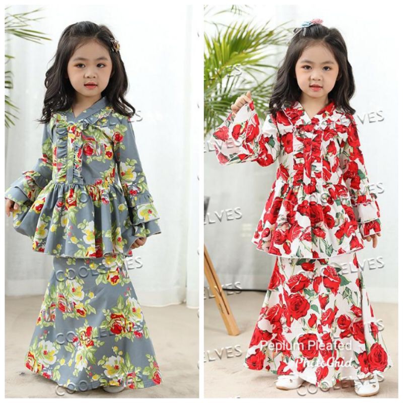 Kebaya Peplum Cotton Bunga Kanak Kanak Shopee Malaysia